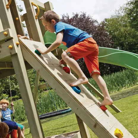Kinderen kunnen naar hartenlust hun ouders imponeren door de @wall module te beklimmen. Het is een ware uitdaging om via de wand met klimstenen de speeltoren binnen te geraken! De @wall module vergroot het evenwichtsgevoel en verbetert de motoriek. En de kleurrijke klimstenen geven net dat beetje extra cachet aan je speeltoren.