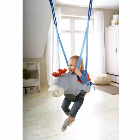 Haba babyschommel paard Met dit schattige hobbelpaard kunnen de allerkleinsten vol enthousiasme op en neer schommelen. Het zitvlak kan door verstelbare riemen aan de lengte van het kind worden...