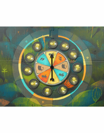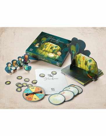 Inhoud: 1 speelbord, 1 draaischijf, 4 nachtfeeën, 4 lantaarns, 1 Groene Giechel, 1 plantenkas, 12 vuurvliegjes