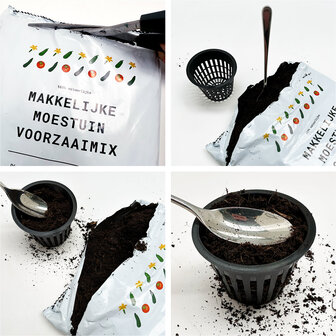 Binnenshuis voorzaaien op dit speciale mengsel is eenvoudig en super makkelijk. De zaadjes kiemen snel en de plantjes groeien sterk op.