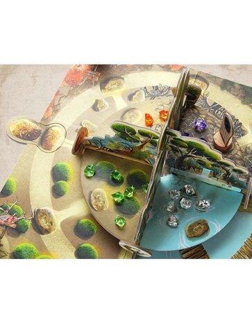 1 bordspel met draaiend bos, 4 Güs, 1 Morc, 4 bosfiguren, 14 receptenkaarten, 1 dobbelsteen, 4x6 kristallen
