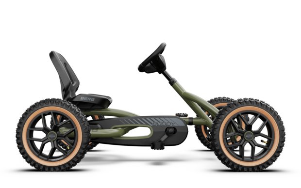 Dankzij de vier wielen heeft de BERG Buddy een uitstekende stabiliteit. Hierdoor kan je snel, scherp en veilig door de bochten. De BERG Buddy heeft ook een schommelas. Hiermee kunnen de voorste wielen wat op en neer schommelen om zo oneffenheden in de weg op te vangen. Hierdoor blijft de skelter stevig op de grond. Alle skelters in de Buddy-lijn hebben luchtbanden. Deze type banden zorgen voor meer comfort en rijgemak. Bovendien geven luchtbanden minder rolweerstand dan massieve banden. Hierdoor kom jij sneller vooruit, maar wel op een veilige manier.